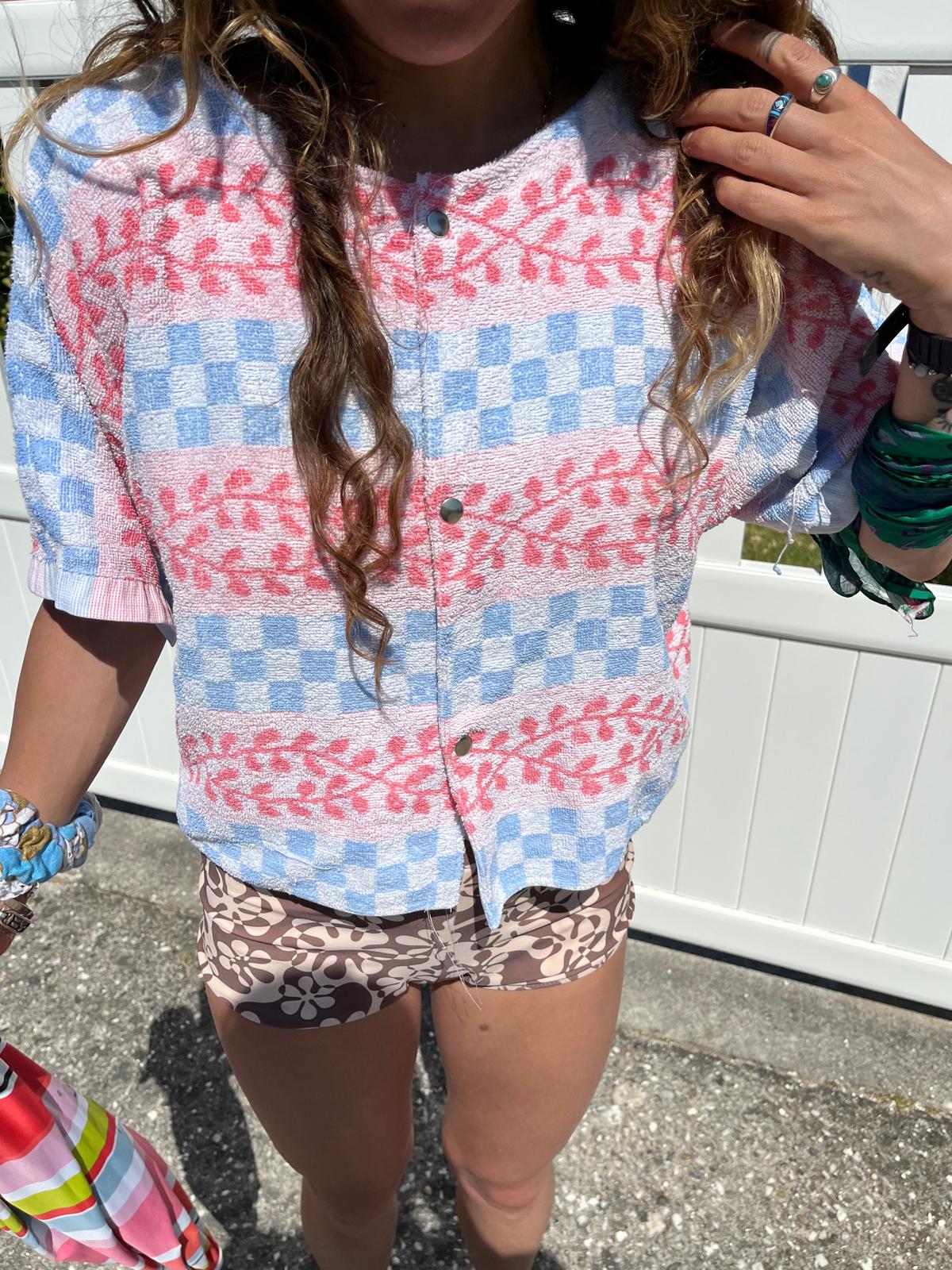 Top fabriqué à partir d’une serviette de bain vintage.