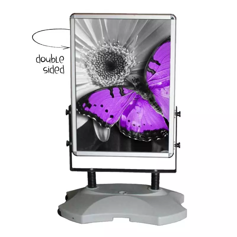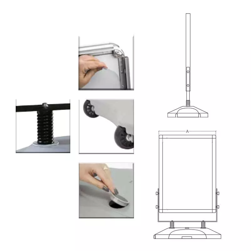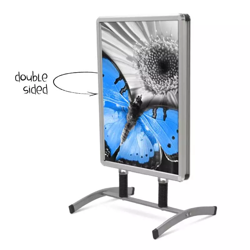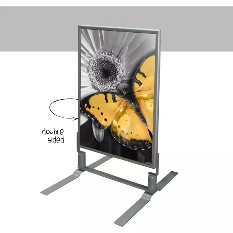 Stop trottoir double face aluminium et pied à ressorts. Affiche 605*860 mm