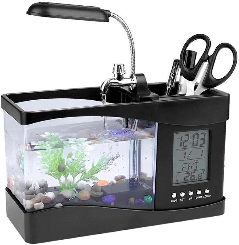 Petit Aquarium 3L de Bureau avec Horloge