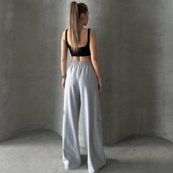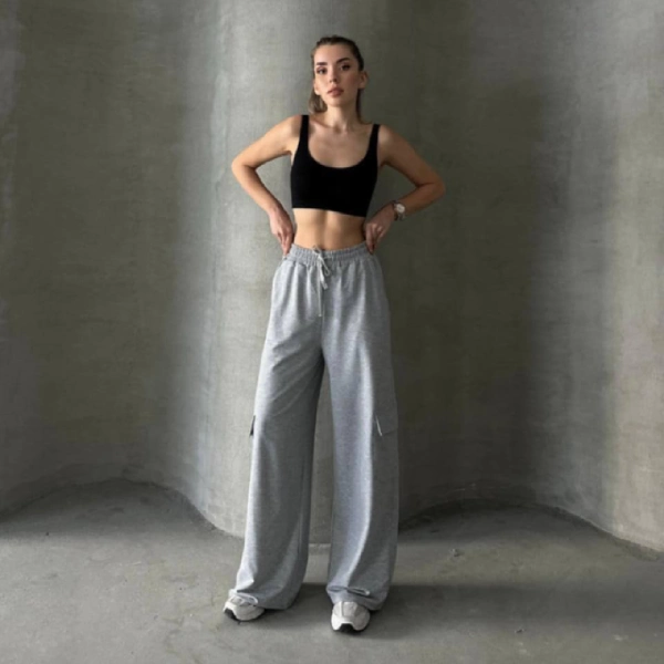 Survêtement sport palazzo femme Perry : poches cargo, tissu doux, oversize chic, importé, pantalon sport, détente, tendance. Confort et style garantis.