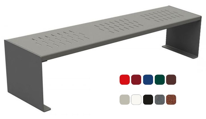 banquette sofia – assise en acier galvanisé peint RAL standard 1 – hauteur d’assise 450 mm – piétement 450×450 mm en acier épaisseur 8 mm – réf. Long. 1800 mm – finition ral standard 1