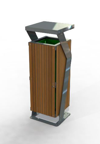 corbeille sofia sans couvercle – acier, bois (chêne clair certifié PEFC épaisseur 22 mm ou acajou) – capacité 120 Litres – contenance : porte sac recevant des sacs de 120 L (non fournis) – système d’ouverture : porte frontale , verrouillage par clé triangle – fixation par tiges d’ancrage -couleur RAL standard 1 – long. 450 x larg. 450 x haut. 750 mm