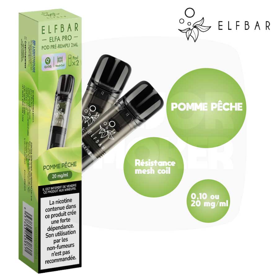 Pod recharge ElfaBar pro à la saveur Pomme pêche.